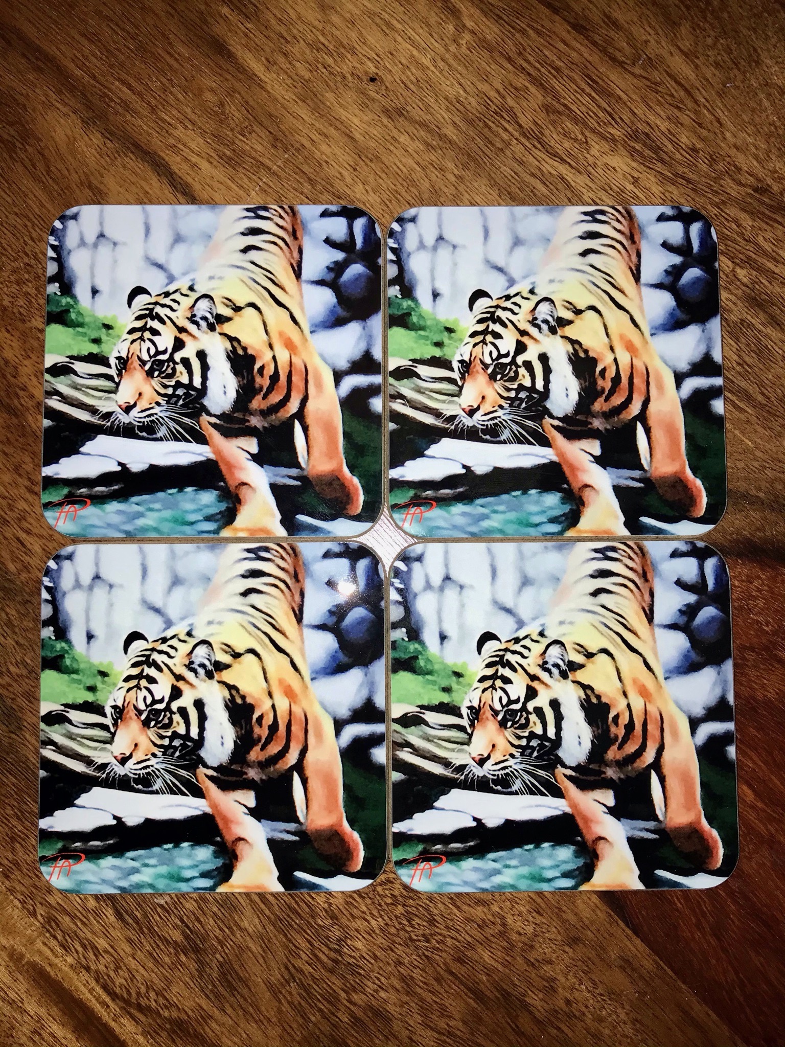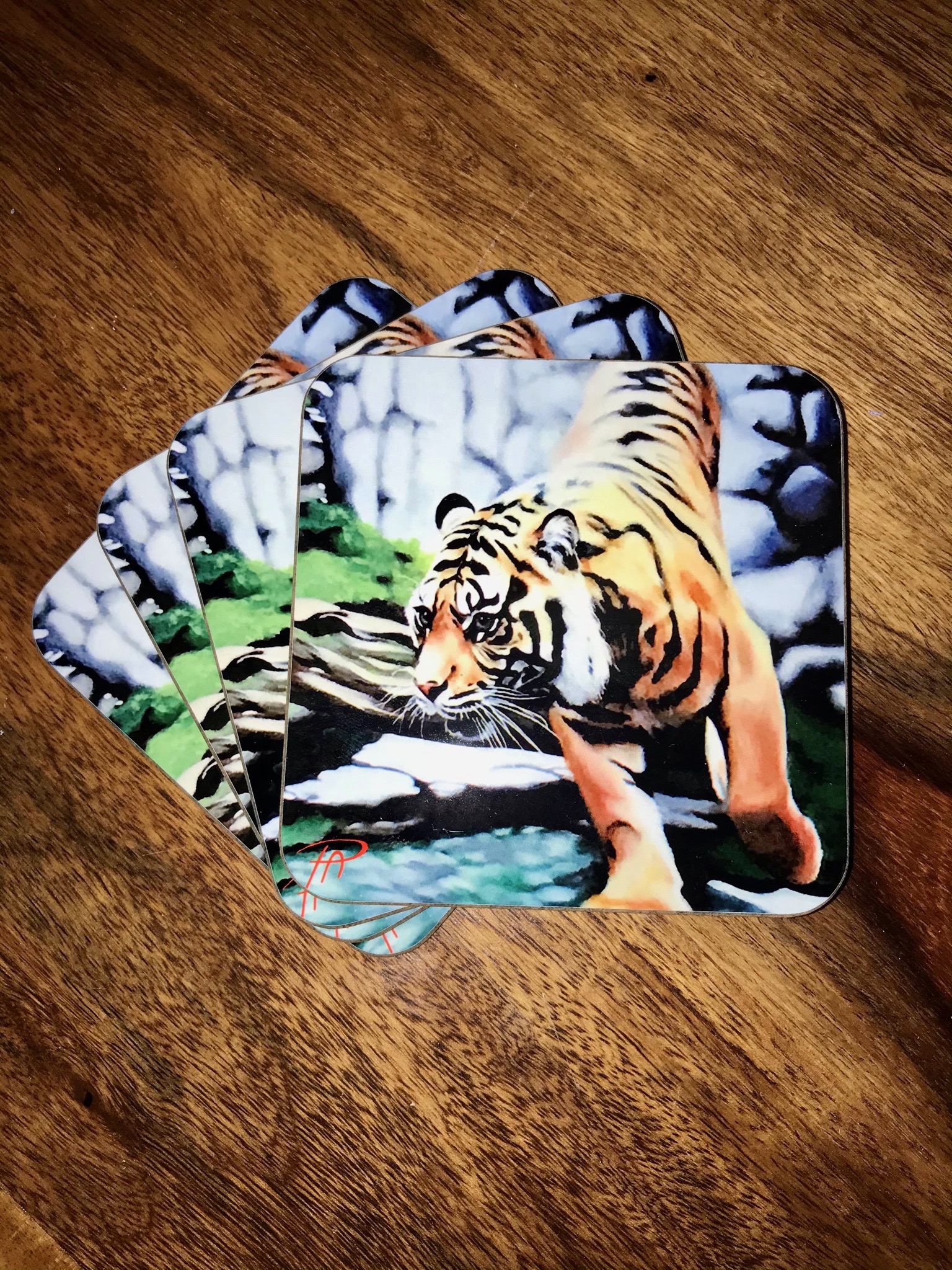 Prowling Tiger Coaster (set of 4) – artwork by Pauline Alldis