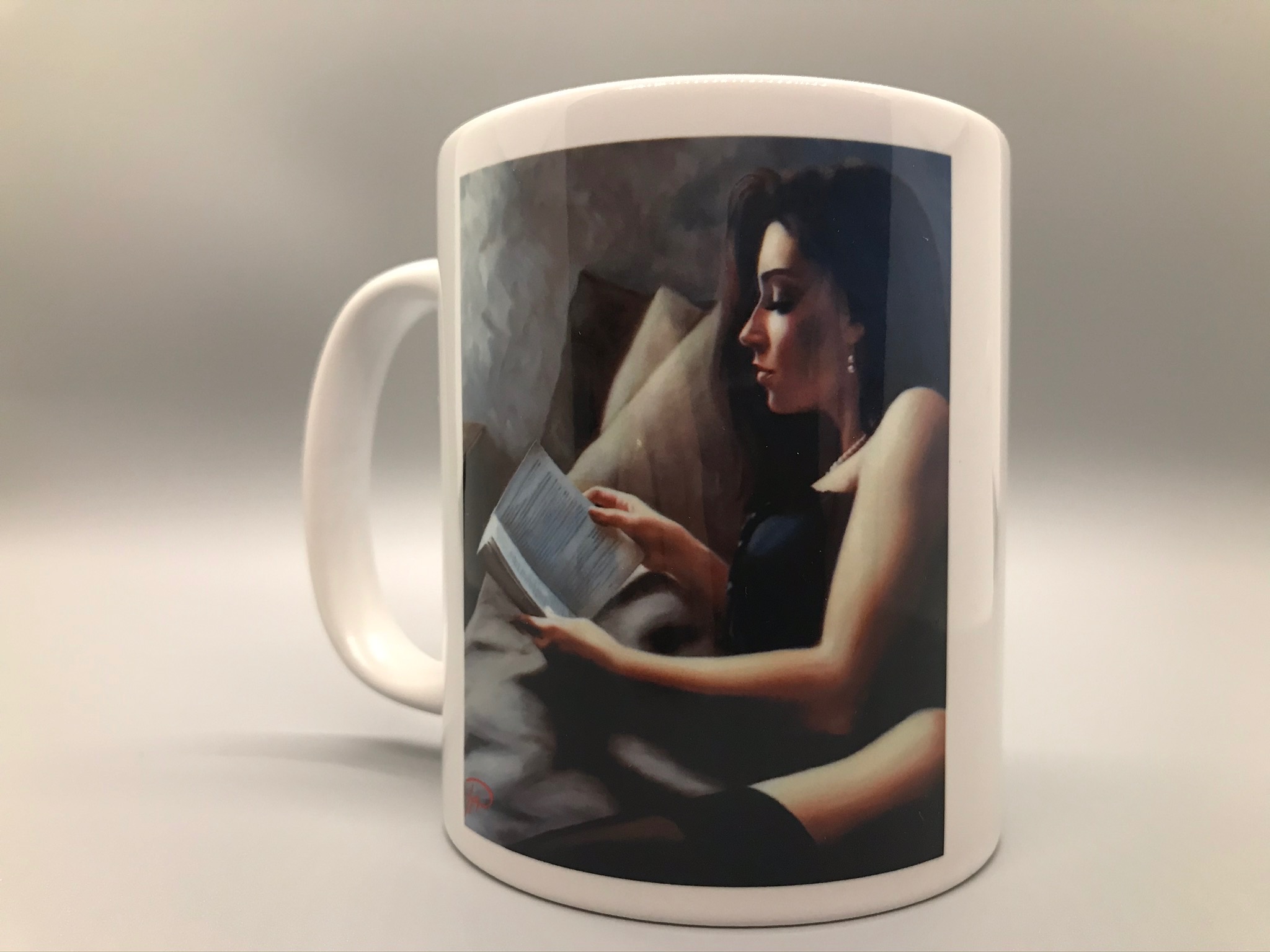 The One More Page figurative mug features an image taken from an original Pauline Alldis oil painting.